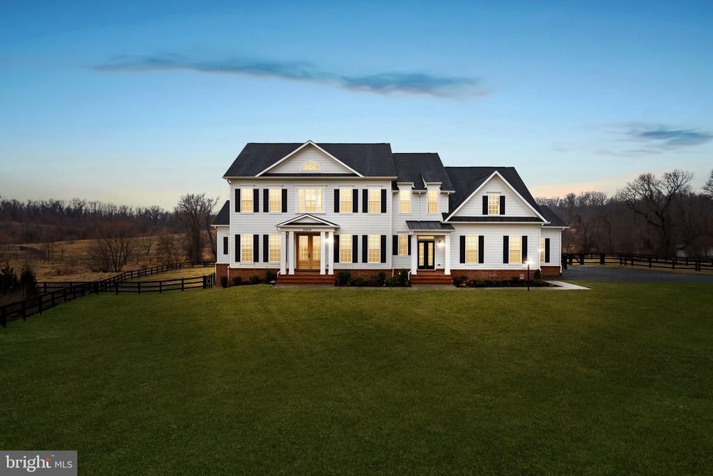 Set on 16 breathtaking conservancy acres in Purcellville, this exceptional home offers timeless architecture, refined interiors, and the peaceful lifestyle Western Loudoun is known for. With HOA approval for horses and surrounding protected land, the property offers rare privacy, open space, and scenic pastoral views. A long private drive leads to the stately white colonial, where a welcoming front porch and sweeping countryside vistas create striking curb appeal. Built by renowned Carrington Homes, the Kendall Lane model is celebrated for its craftsmanship, elegant design, and thoughtfully designed living spaces. Inside, a gracious foyer welcomes you with rich hardwood floors, detailed trim work, and a beautifully crafted staircase. Arched openings, elegant moldings, and beautiful solid wood French doors that frame views of the surrounding landscape add warmth and architectural character throughout the home, while expansive living areas create an effortless flow between spaces. At the heart of the home is a stunning chef’s kitchen designed for both entertaining and daily life. Featuring expansive quartzite countertops, custom white cabinetry, double wall ovens, a statement range hood, and an oversized center island with seating, the kitchen opens seamlessly to the family room and sun-filled morning room where walls of windows frame tranquil views of the surrounding acreage. The family room is a true showpiece, featuring an elegant coffered ceiling, a beautiful fireplace that anchors the space, and large windows that fill the room with natural light. A main-level bedroom with a full en suite bath provides the perfect space for guests, extended family, or a private home office. Upstairs, the luxurious primary suite offers a true retreat, complete with a tray ceiling, hardwood floors, and a spacious sitting area highlighted by an elegant arched window overlooking the property. The spa-inspired primary bath features dual vanities, a freestanding soaking tub centered beneath an arched window, and a large walk-in shower with elegant tile surround. The finished lower level provides additional space for recreation, entertaining, fitness, or media. This remarkable property offers the rare combination of luxury living, protected land, and countryside charm—just minutes from Purcellville’s charming downtown, wineries, breweries, and farm markets.